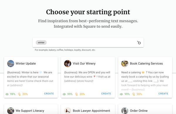 Find inspiration from best-performing text messages. Curated by professional copy-writers